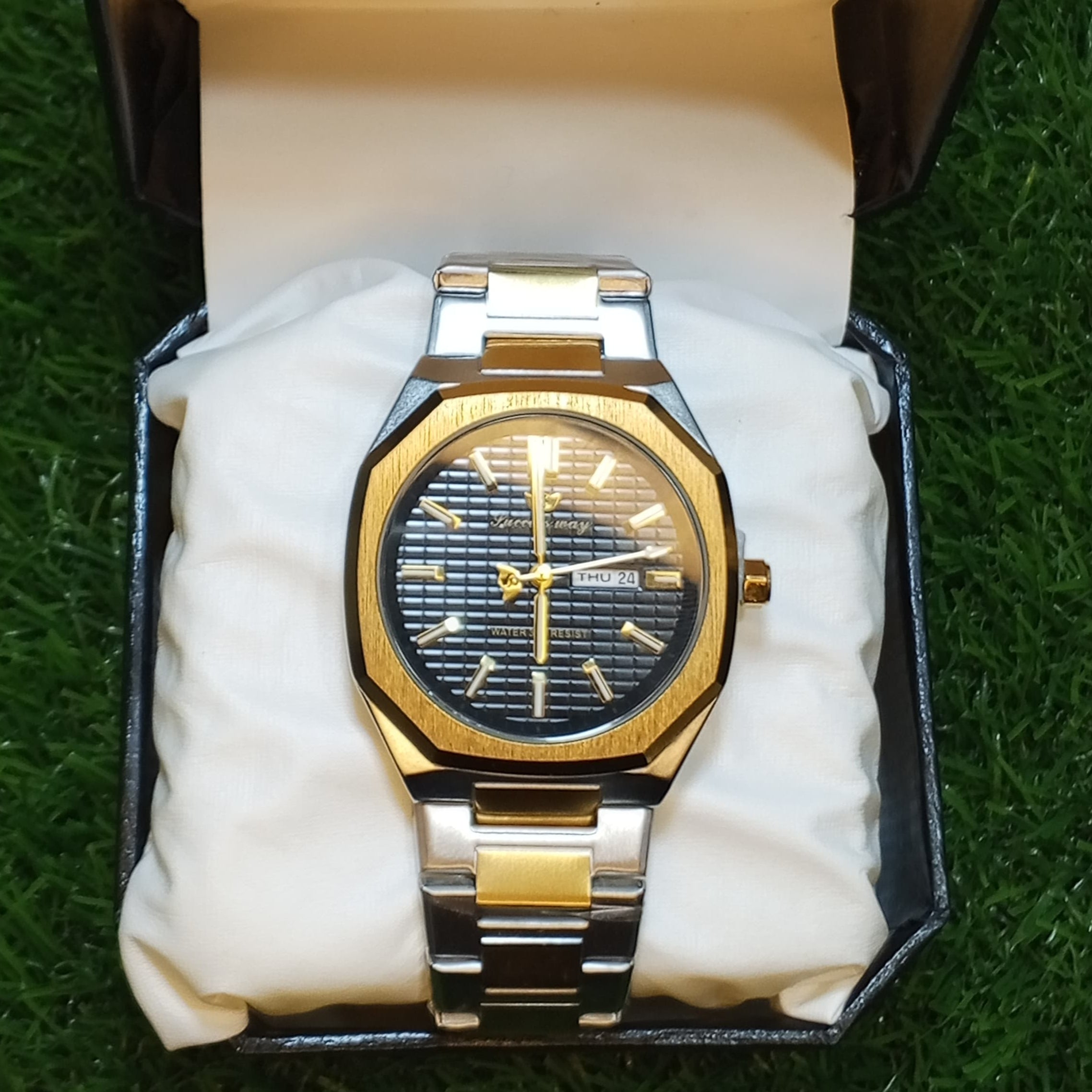 Success Way Two-Tone Watch – Black Dial | Day & Date | Stainless Steel